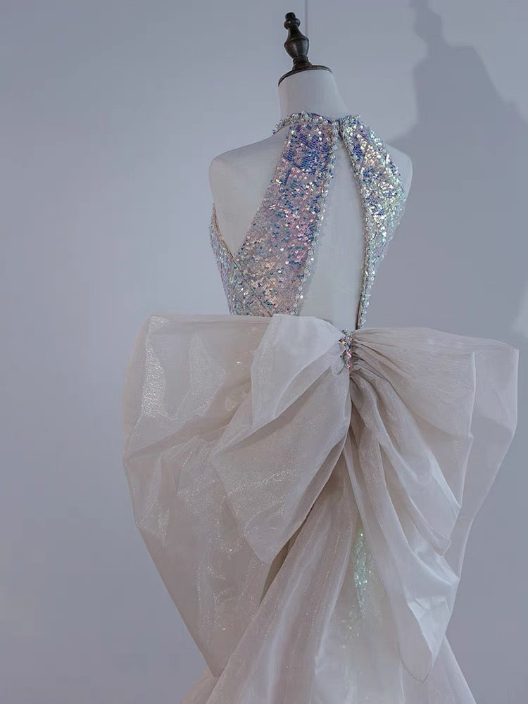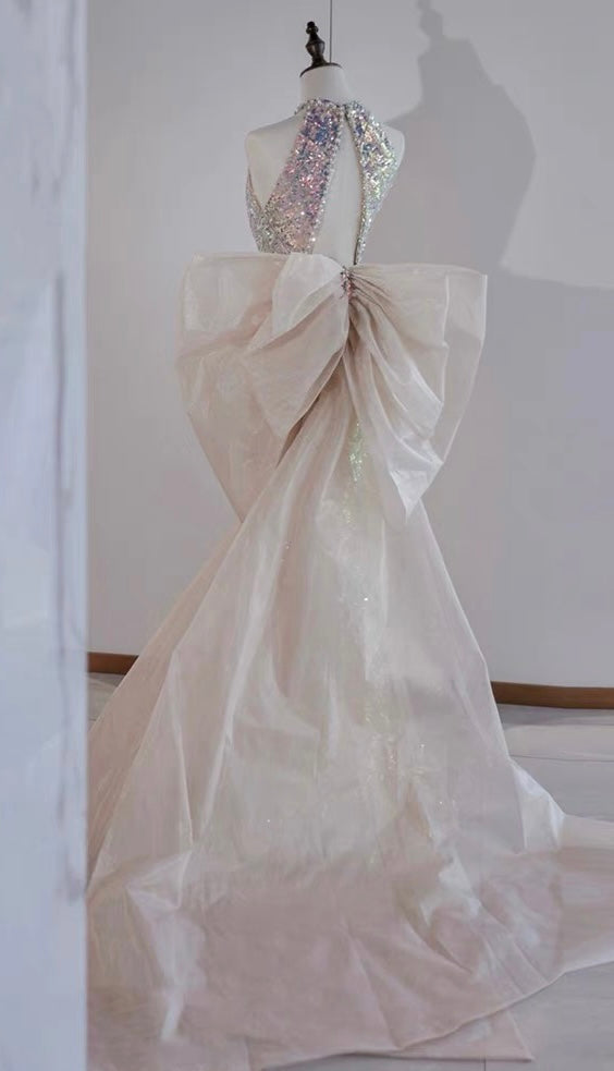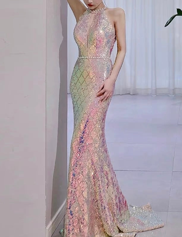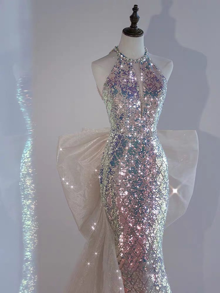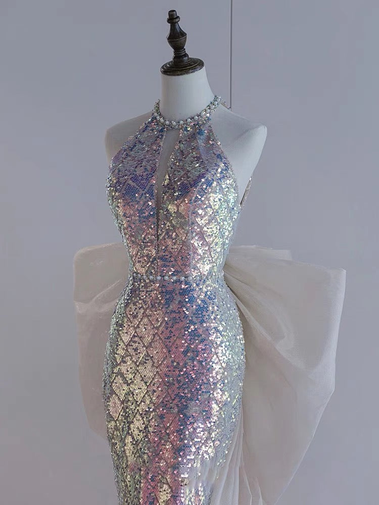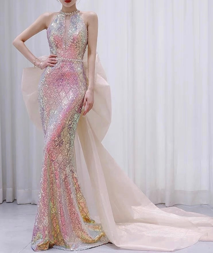 Aurora blue and pink sequins, small fishtail style, with a detachable decorative bow on the back🎀